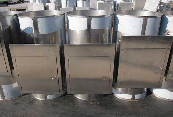2.本系統(tǒng)具有電子顯示、電子報警、電子互鎖功能,滿足消防安全要求。不銹鋼污衣槽系統(tǒng)由槽身、投物口、污物出口、檢修口、固定臺架,消防系統(tǒng)及電控系統(tǒng)等組成。槽身分段制作, 污衣槽可采用法蘭連接方式,也可以采用插口連接方式。